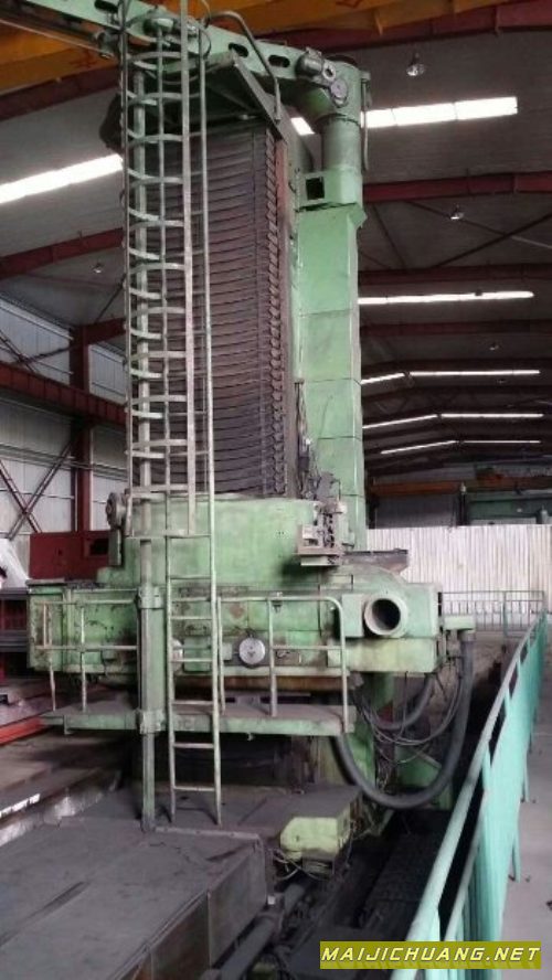 13米落地式镗铣床,2006年法国进口设备,机床床身、立柱采用矩形导轨结构,方滑枕内配有可伸缩镗杆,X轴为蜗杆式传动,Y轴、Z轴与W轴方向为丝杠传动,配有行程为4.5米的回转工作台,尺寸为2250×2750mm。