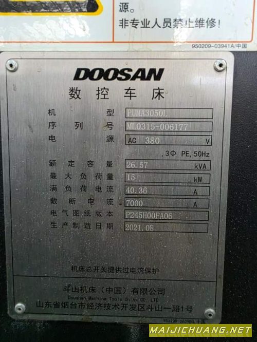 斗山PUMA3050L,12寸卡盘,18.5KW主轴电机,过棒料76,10工位伺服刀塔,带尾座,硬轨机。回转直径630,车削直径460,加工长度1058,精度已试车缪级。